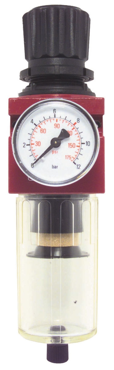 Ein Blick auf die Wartungseinheit, hin und wieder eine Entleerung des Wasserabscheiders und vor Einsatz vor drehenden/ schlagenden Werkzeugen am Öler die Einstellung der Tropfmenge: Geringer Aufwand für gute Druckluftqualität.