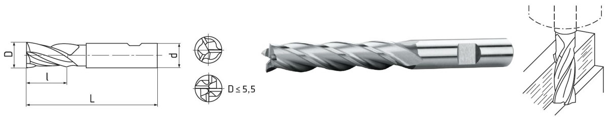 Technische Spezifikationen Elmag HSS Co8-Schaftfräser DIN 844