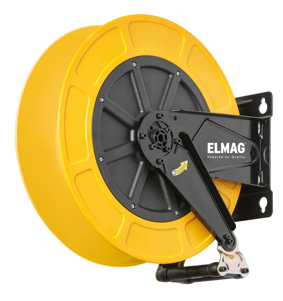 Robuste und kompakte ELMAG-Aufroller ermöglichen den praktischen und sicheren Transport aller Arten von flüssigen und gasförmigen Medien mittels flexiblen Schläuchen.