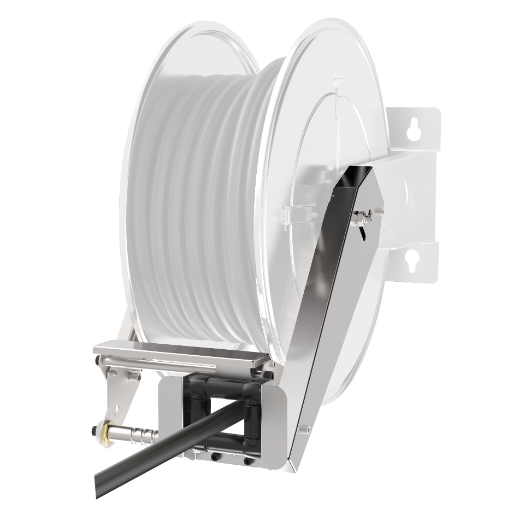 Die neue automatische Schlauchführung garantiert die korrekte Anordnung des Schlauches auf der Trommel und verhindert so ein zufälliges Zurückspulen.