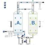 Sobald die Regeneration ausgeführt wurde und Turm B wieder unter Druck steht, wechselt das Einlassventil (2) wieder den Luftstrom.