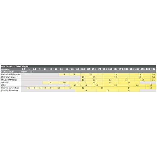 Technische Spezifikationen Elmag Schweißbrillenglas DIN 10