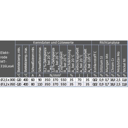 Technische Spezifikationen Elmag Schweißelektr. MT-316L / ea4 (1.4430)