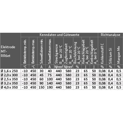 Technische Spezifikationen Elmag Schweißelektroden MT-RR6 et