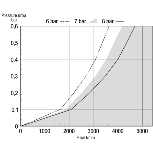 • Nenndurchfluss 3.600 Nl/min (bei 6 bar Vordruck und Druckabfall 0,6 bar)