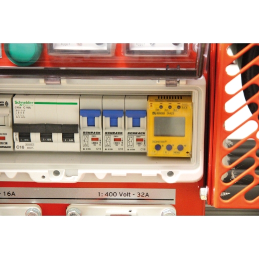 – Anschlüsse: 3x 230 V Schuko 16A-IP68, 1x 400 V CEE 16A-5p IP67, 1x 400 V CEE 32A-5p IP67
