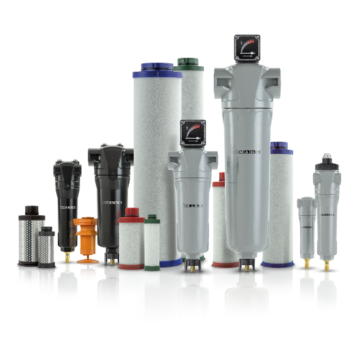 In jedem Druckluftnetz muss mindestens ein Filter installiert sein. Dadurch wird die Luftqualität verbessert, was sich vorteilhaft auf Ihr gesamtes Druckluftnetz, einschließlich nachgeschalteter Trockner, Luftleitungsrohre und Druckluftwerkzeuge, auswirkt. Je nach Anwendungen müssen Sie die Luft eventuell in mehreren Stufen filtern,um eine Sättigung der Elemente zu verhindern, die Luftqualität zu erhalten und Druckabfälle zu vermeiden.
