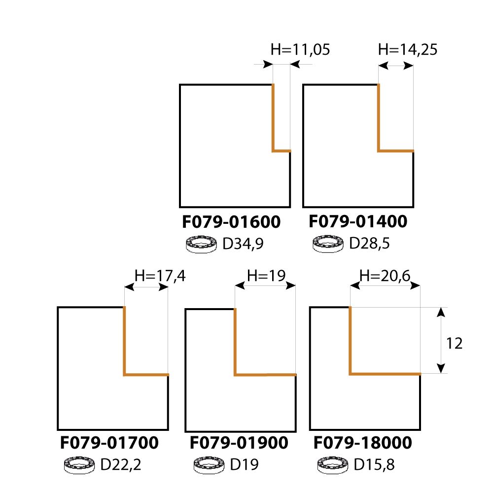 Es ist möglich, Kopierlager für diesen Fräser zu kaufen, um verschiedene Spannutenbreiten (H) herzustellen.