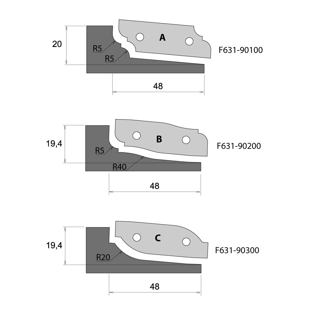 Profilmesser für F631 – Typ C, obere Ausführung