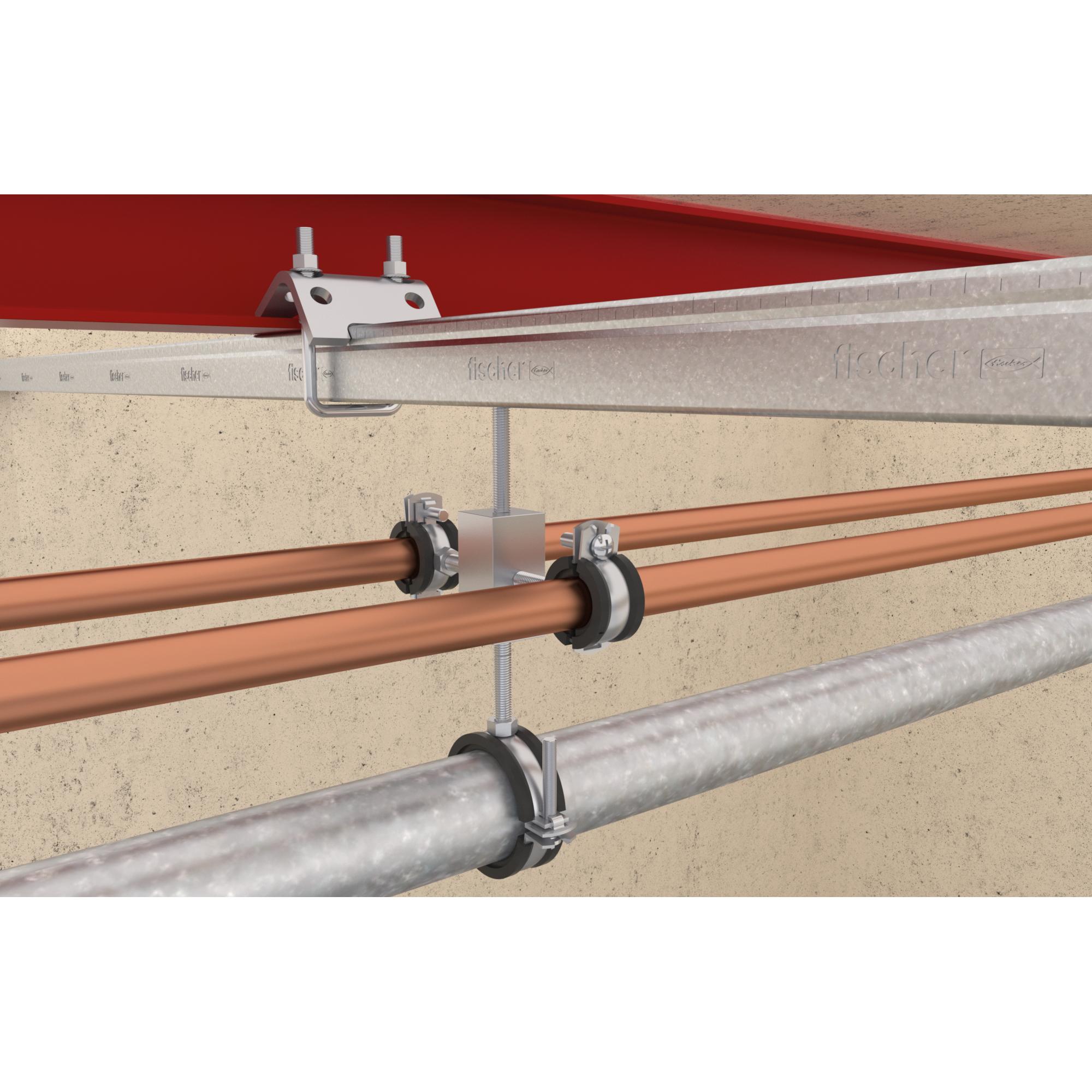 • Ökonomisches Befestigen von Rohrleitungen bis 2“ mit Gewindestangen oder Stockschrauben.