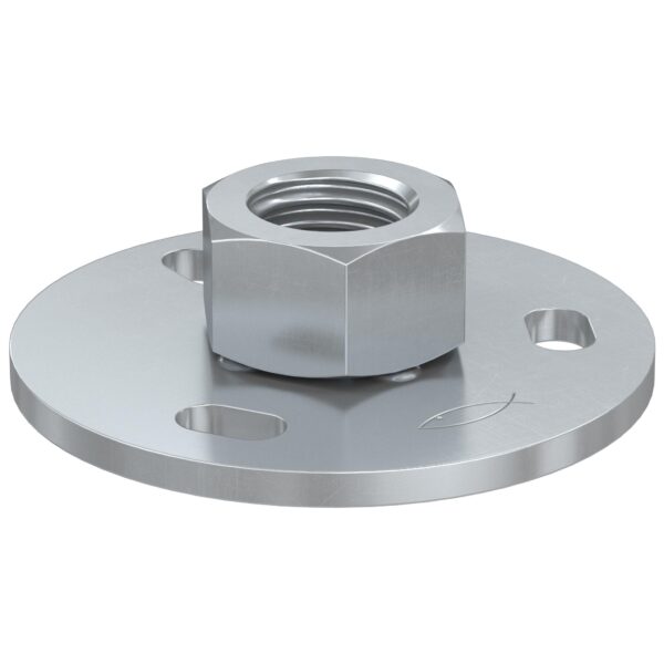 Universelle runde Grundplatte mit aufgeschweißter Gewindemuffe.