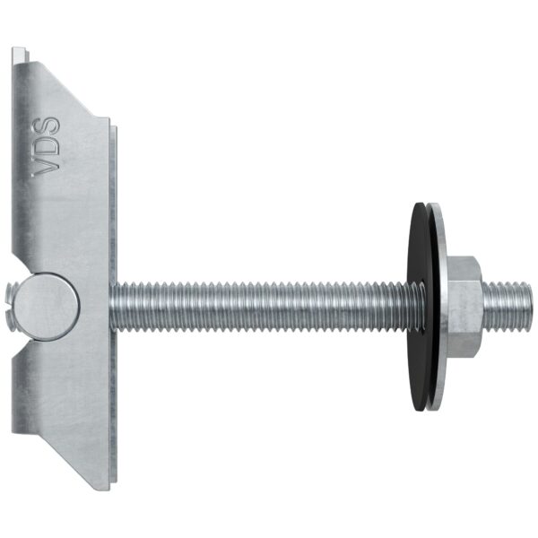 Der fischer Kippdübel KDS mit VdS- und FM-Zulassung ist ein Befestigungselement für Trapezblechdecken und bietet eine sichere und objektiv geprüfte Lösung zur Befestigung von Rohrleitungen in stationären Sprinkleranlagen. Weitere Bauteile wie z.B. Montageschienen, Lüftungskanälen, Stromtrassen und Beleuchtungssysteme lassen sich durch die einfache Handhabung ebenfalls schnell an Trapezblechen befestigen. Die höhenverstellbare und gegen versehentliches Herausdrehen gesicherte Gewindestange erlaubt dabei die praktische Ausrichtung der zu montierenden Bauteile am Trapezblech. Die Auswahl an verschiedenen Längen hilft bei der Auswahl des geeigneten KDS-Kippdübels für den jeweiligen Anwendungsfall.