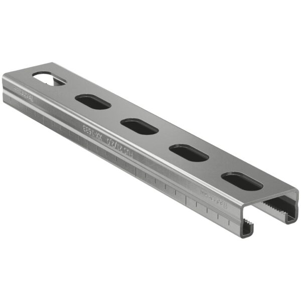 Die hochwertige fischer Montageschiene FUS A4 ist eine C-Profil-Montageschiene zur Herstellung von sicheren horizontalen und vertikalen Installationen. Ermöglicht die schnelle und rationelle Befestigung von Rohrsträngen und Tragkonstruktionen. Die Schienengeometrie gewährleistet die Verwendung des umfangreichen fischer Zubehörsortiments. Die ausgeprägte Verzahnung in der Schiene bietet der Schiebemutter sicheren Halt bei vertikalen Montagen und hohen Querlasten. Verschiedene Schienen-Wandstärken erlauben eine wirtschaftliche Schienenauslegung. Die Skalierung auf den Montageschienen vereinfacht das Ablängen und Platzieren der Bauteile. Langlöcher in der Schiene ermöglichen mehr Flexibilität bei der Montage der Anbauteile.