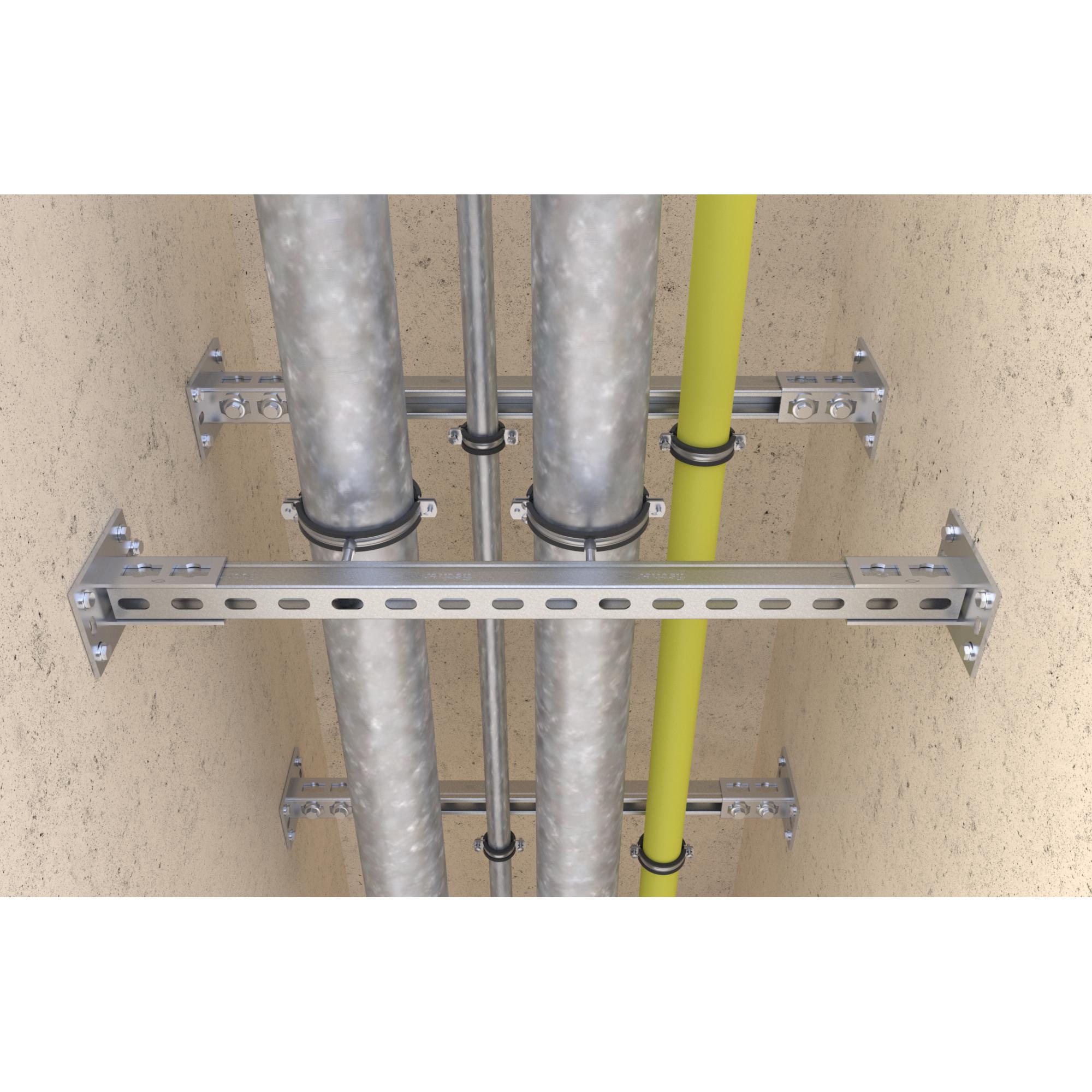 - Verbindungselement zwischen Montageschiene und Bauwerk für das Durchstecksystem.