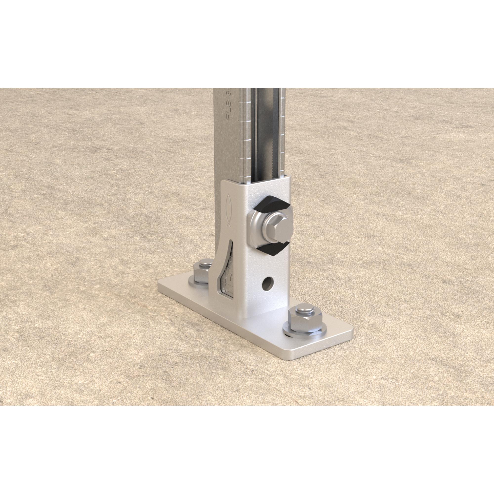 Das vormontierte fischer Konstruktionselement Sattelflansch SF Clix 31 verbindet die Montageschienen FLS in einem Winkel von 90° sicher mit dem Untergrund. Das vormontierte Element spart dabei Zeit und Kosten. Der Befestiger im SF Clix und der passgenaue Sattel ermöglichen die sichere und schnelle Montage. Die stabile Grundplatte des SF Clix 90° mit um 90° gedrehten Langlöchern erleichtert das Befestigen mittels Dübel oder Anker an den Untergrund. Die Ausführung mit galvanischer Verzinkung ist für Installationen in Gebäuden geeignet.