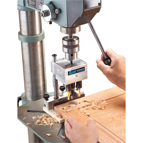 Dübelbohrer, Forstnerbohrer und modulare Trägerbasis sind nicht im Lieferumfang enthalten und können als Zubehör gekauft werden.