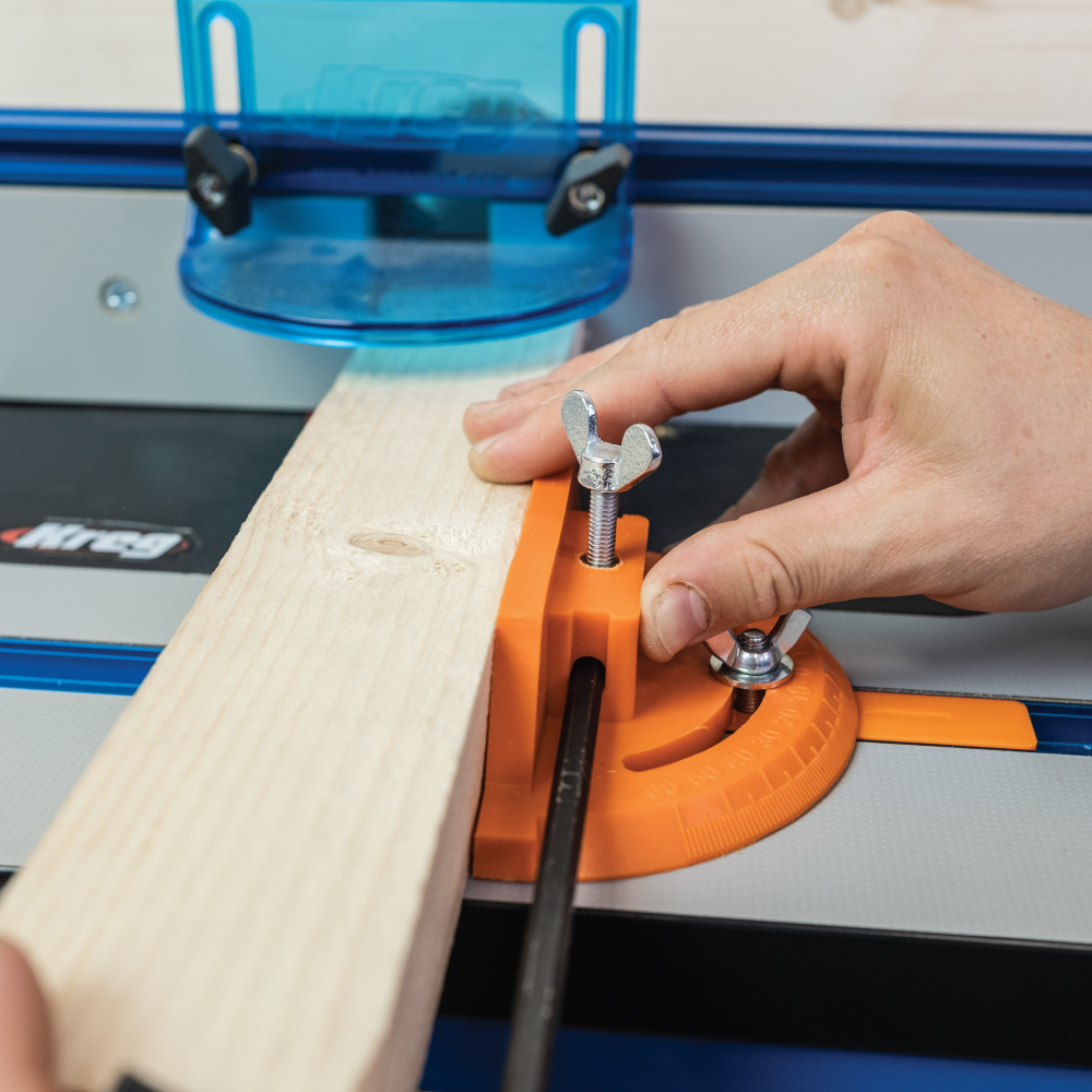 Für die perfekte Winkeleinstellung beim Fräsen. Bereich ± 60 Grad. Kann in der Alu-Nute bewegt werden. Ausgestattet mit Anschlagpin.