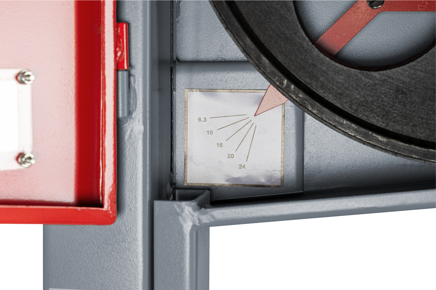 Im breiten Sortiment an HOLZMANN Holzbandsägen spielt die HBS400_400V trotz ihres geringen Platzbedarfes bereits in der Oberliga. Dafür sorgen nicht nur die beiden massiven Gusseisenlaufräder und die exakt und einfach positionierbare Sägebandführung. Der stabile, schwenkbare Graugusstisch, die detailliert durch eine Lupe ablesbare Skala und die Sägebandspannungsanzeige macht die HBS400_400V zu einer präzisen Maschine für den Profibereich.