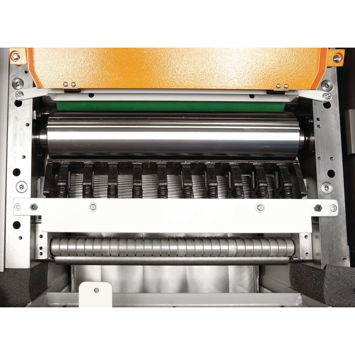 • Schrägverzahnte Stahleinzugswalze für einen konstanten und gleichmäßigen Holzeinzug
