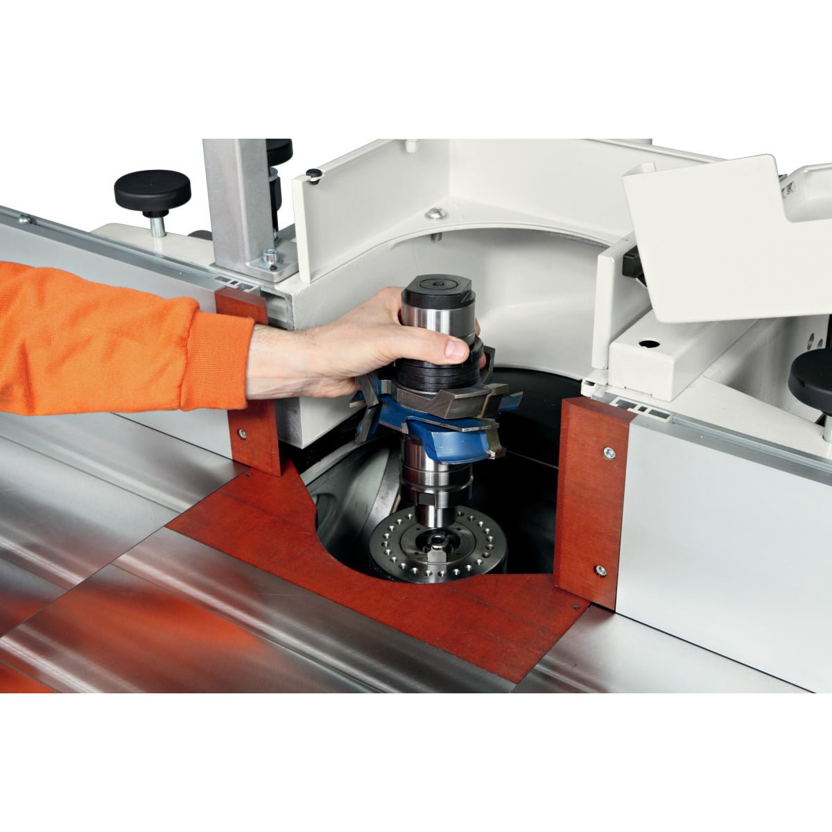 • Fräsanschlag mit Feineinstellung, linear verstellbar über Handräder von der Bedienerfront aus