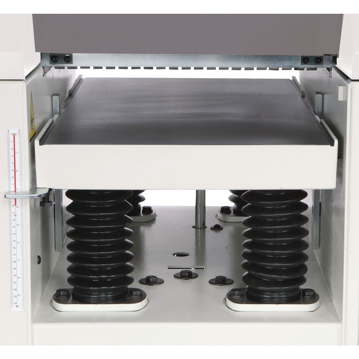 • Der Arbeitstisch ist auf vier großen Säulen gelagert, die unter allen Arbeitsbedingungen größte Stabilität gewährleisten.