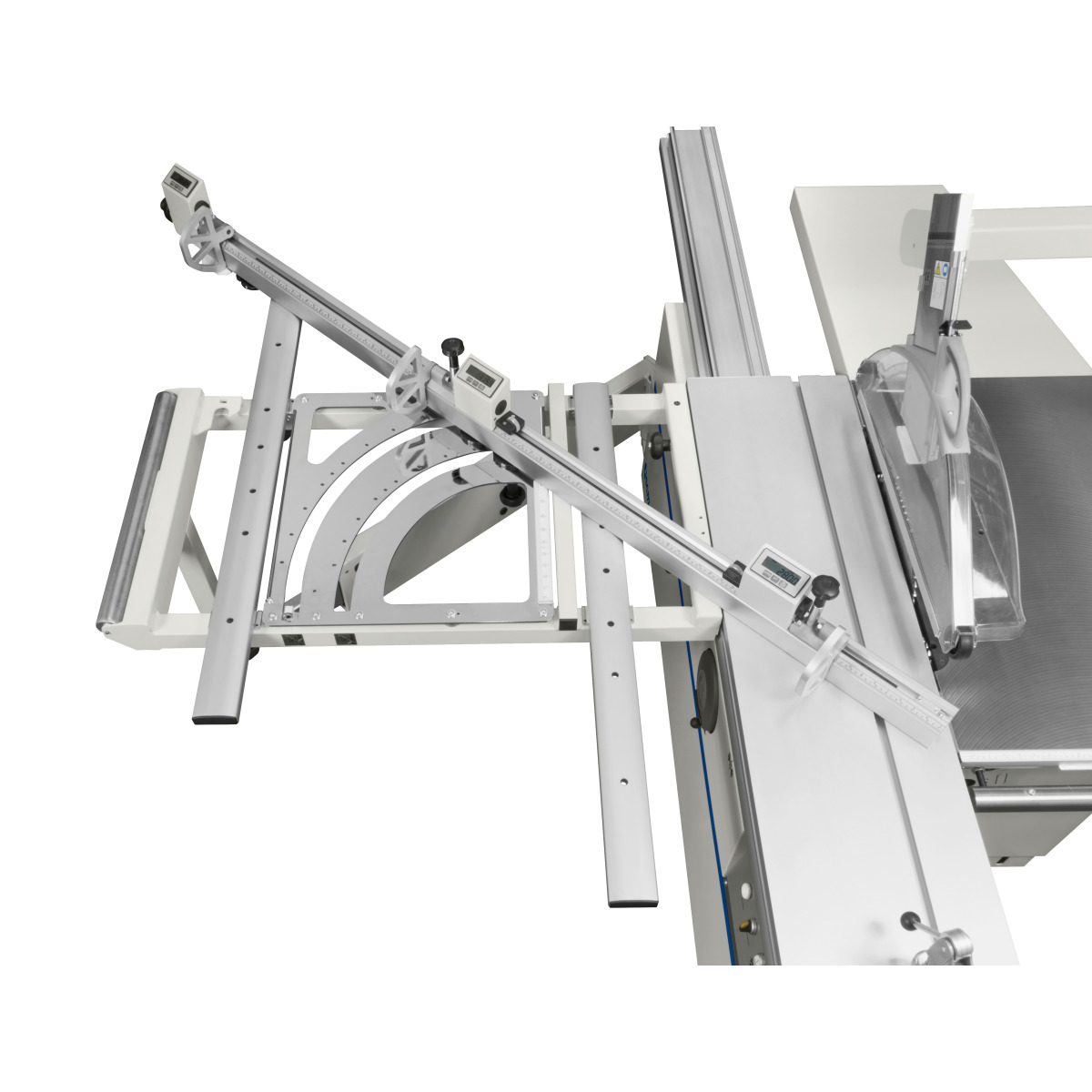 • Drei Längsanschläge mit integrierten Digitalanzeigen