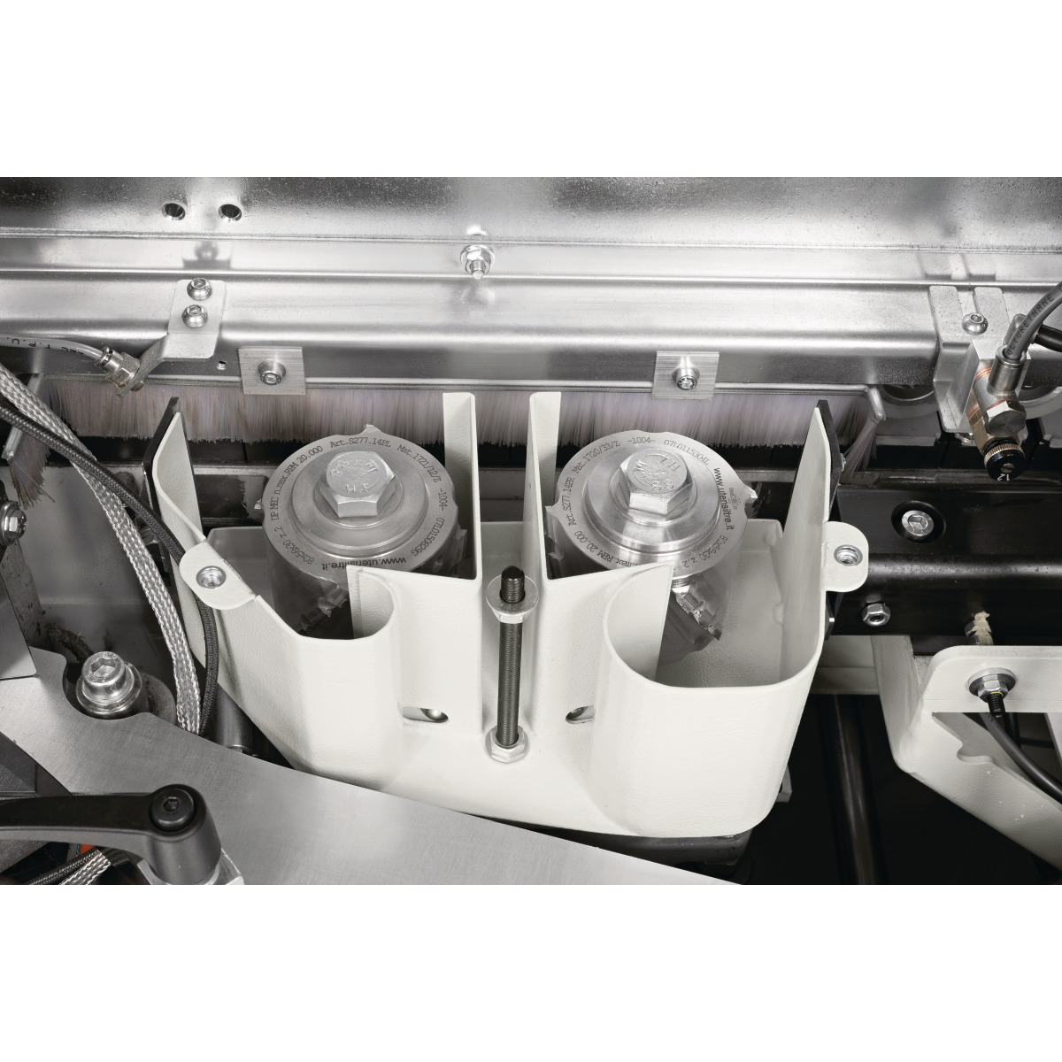 Bündigradiusfräsaggregat Aufnahmeleistung: 2 x 0,35 kW Fräser-Durchmesser HM: 55,3 mm Fräserdrehzahl: 12000 min¯¹ Absaugstutzendurchmesser: 60 mm Anzahl Absaugstutzen: 2