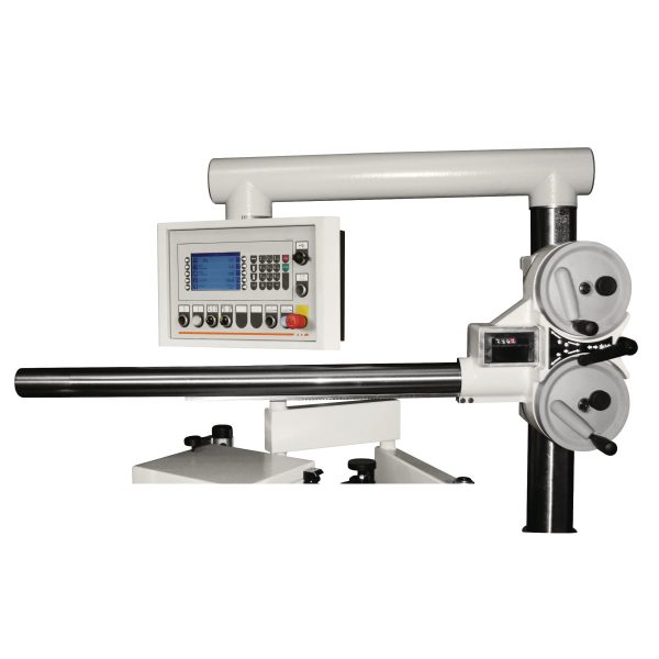Der Kreuzsupport für Vorschubapparat von SCM Group ermöglicht manuelle Höhen- und horizontale Verstellungen mittels Handrädern und kann vom Arbeitstisch weggeschwenkt werden, ist jedoch nur mit einem schwenkbaren Bedienpult verwendbar.