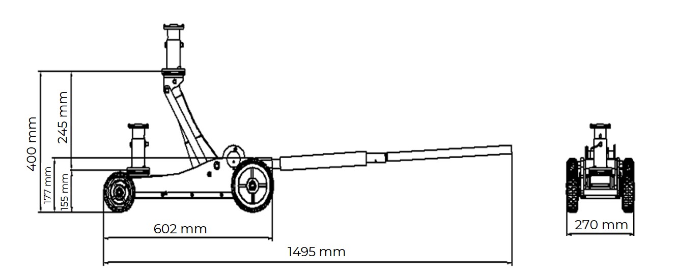 Der HOLZMANN Offroad Wagenheber OWH1.5 mit bis zu 1,5 Tonnen Hubkraft und Ø150 mm Vorder- und Hinterräder zum besseren Handling im Gelände.
