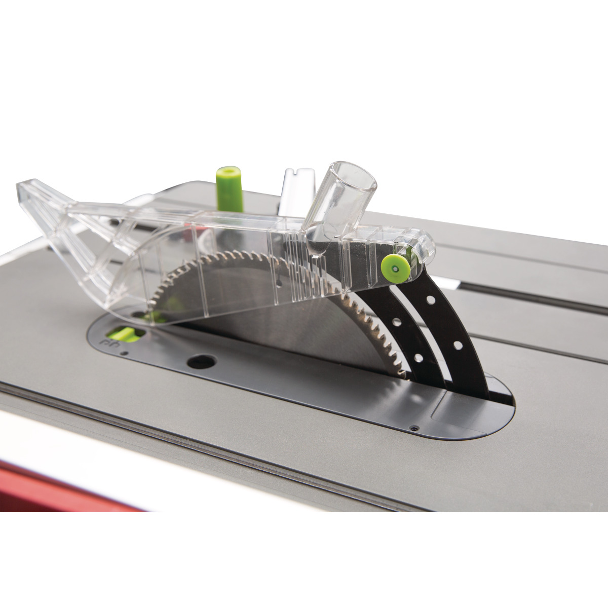 • Werkzeugloser Wechsel der Sägeblattschutzhaube und der Tischeinlage
