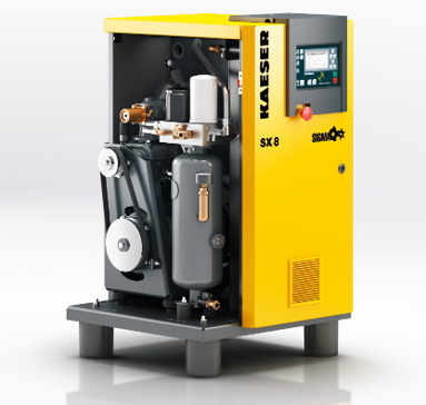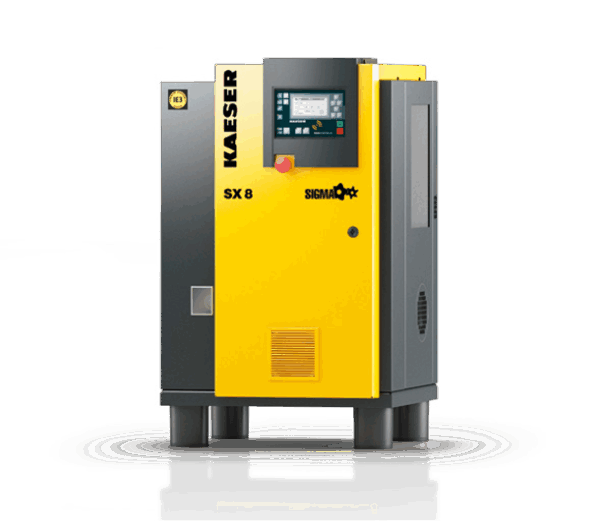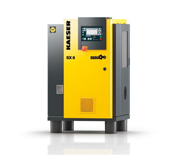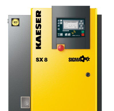 Der Kaeser SX 8 mit SIGMA CONTROL 2 ist ein kompakter, leise laufender Schraubenkompressor für den professionellen Dauerbetrieb. Die gesamte Anlage ist sofort betriebsbereit, superschallgedämpft, schwingungsisoliert und für Umgebungstemperaturen bis +45 °C ausgelegt. Die pulverbeschichteten Verkleidungsteile sowie die abnehmbare Seitenhaube ermöglichen einen besonders einfachen Zugang zu allen Wartungspunkten.