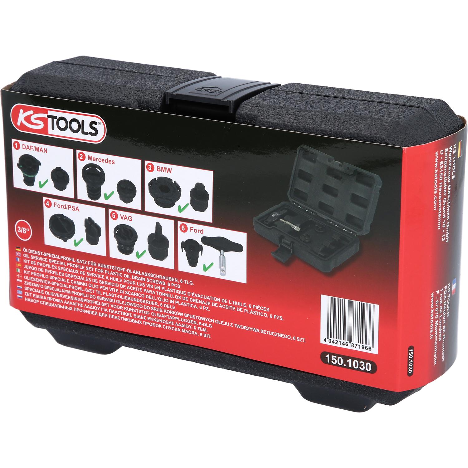 KS Tools 3/8" Öldienst-Spezialprofil-Satz für Kunststoff-Ölablassschrauben, 6-tlg bestehend aus: