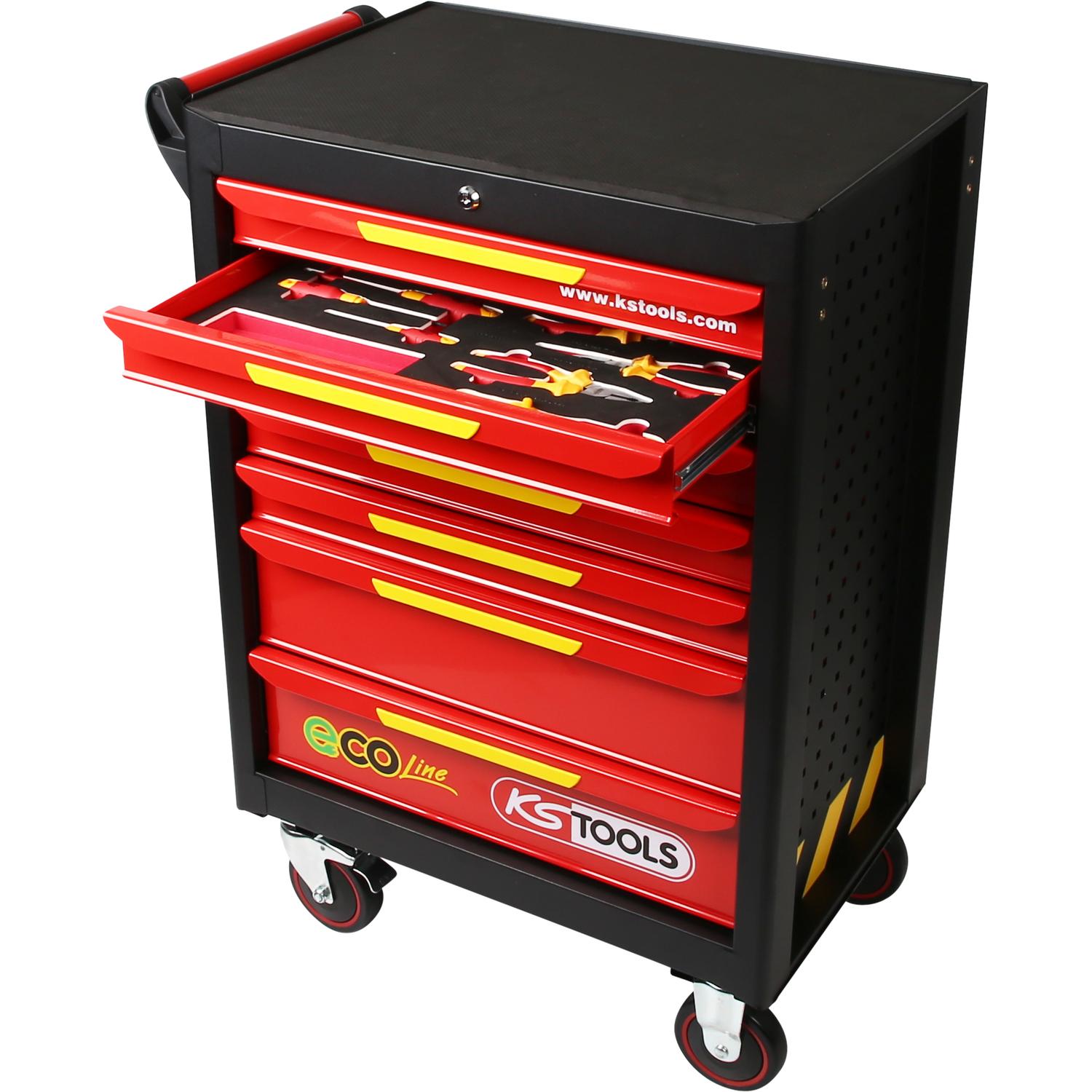 KS Tools ECOline Werkstattwagen mit 42 isolierten Werkzeugen für Hybrid- und Elektrofahrzeuge