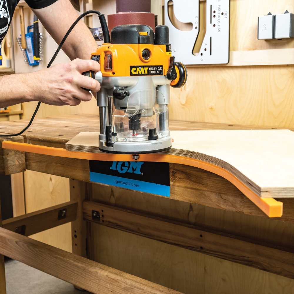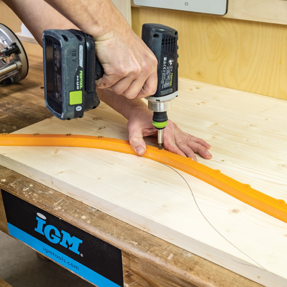 Hervorragende Vorrichtung für schnelle und genaue Herstellung von Schablonen für das Formfräsen. Hergestellt aus einem flexiblen Material, das Sie in die gewünschte Form bringen und dann mit Schrauben an der zukünftigen Schablone befestigen können. Die Schablone wird an das Werkstück befestigt und mit Kopierlager am Schaftfräser oder am Messerkopf wird die gewünschte Form kopiert.