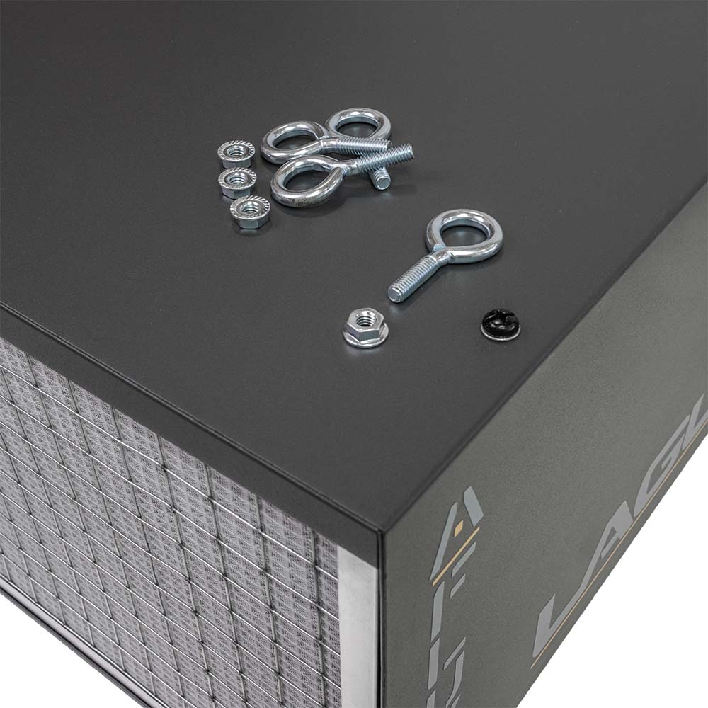• 4x Ringschrauben und Flanschmuttern zum Aufhängen an der Decke