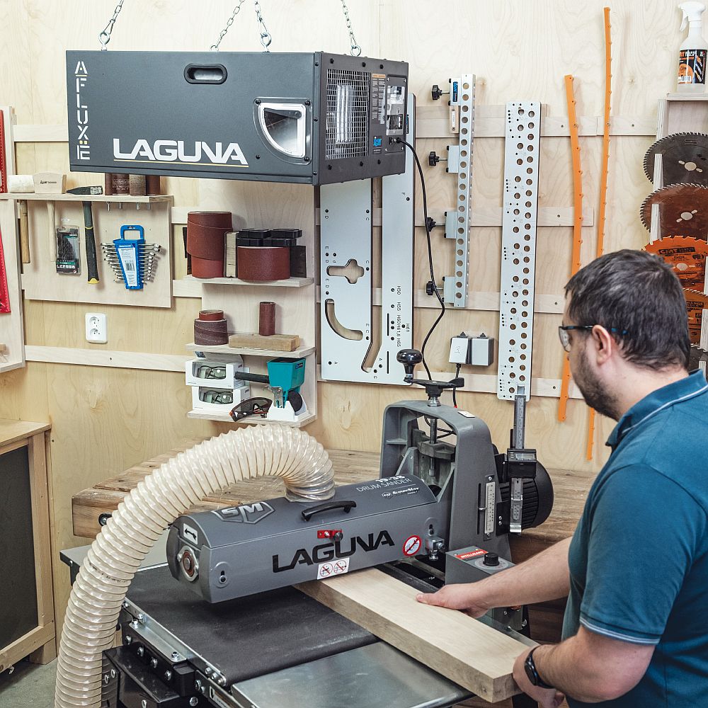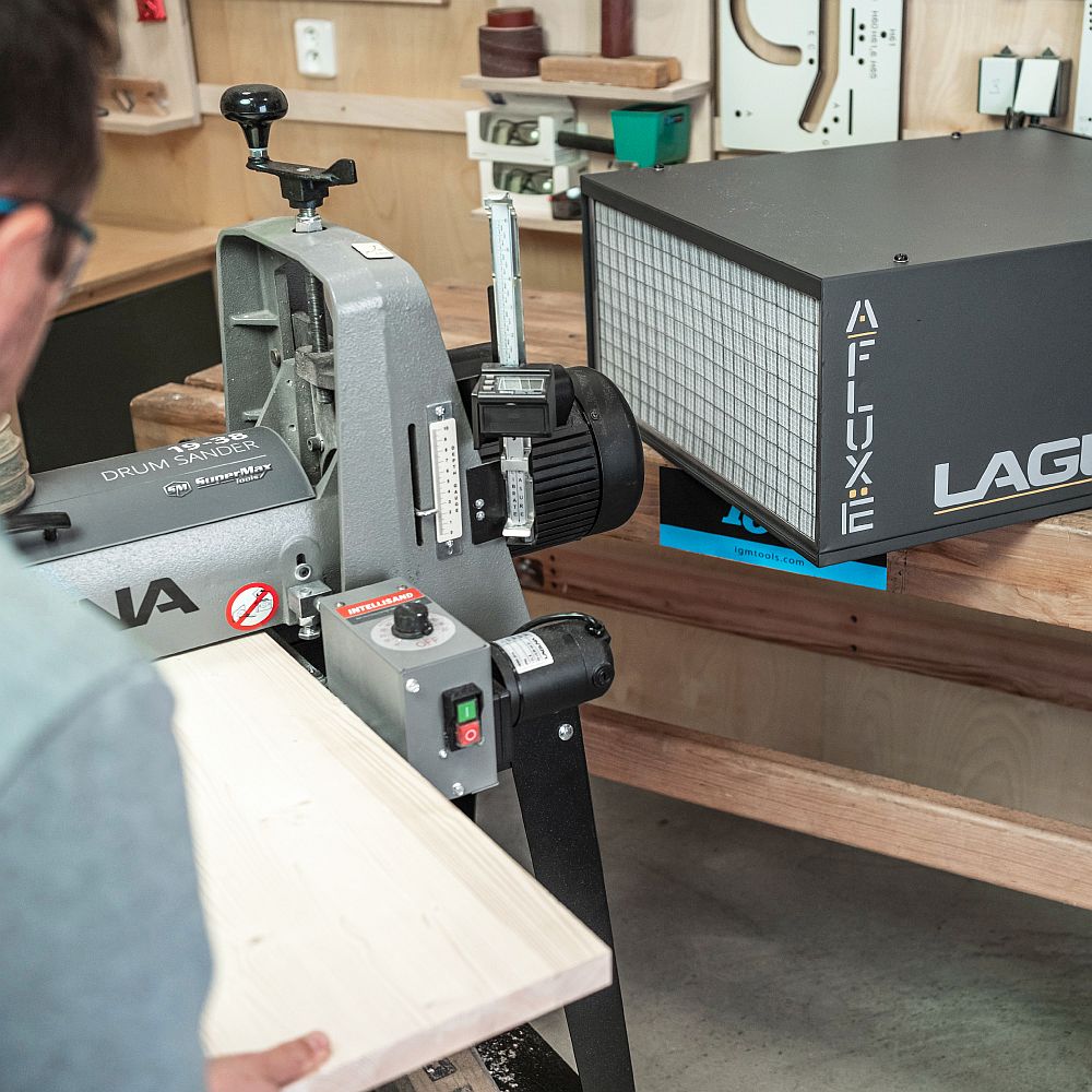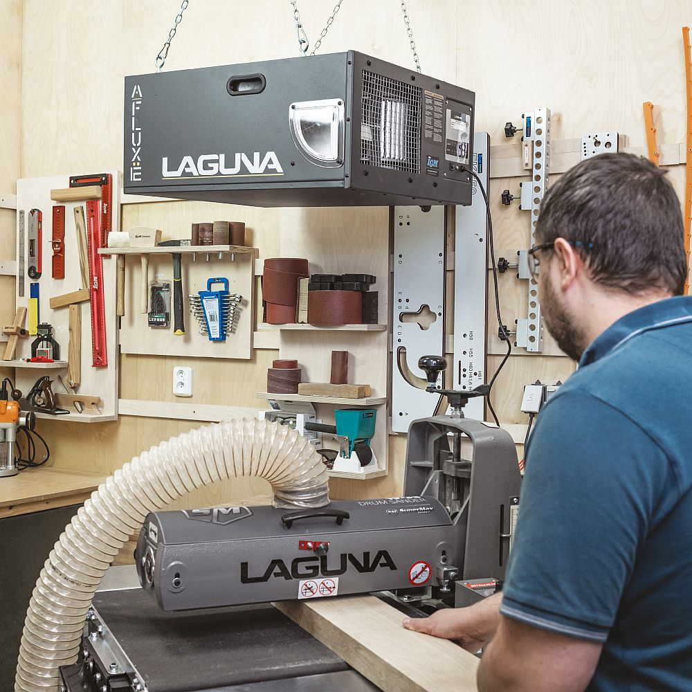 • Filtert die Luft in der 6 x 6 x 2,5 m großen Werkstatt bis zu 22 Mal pro Stunde.