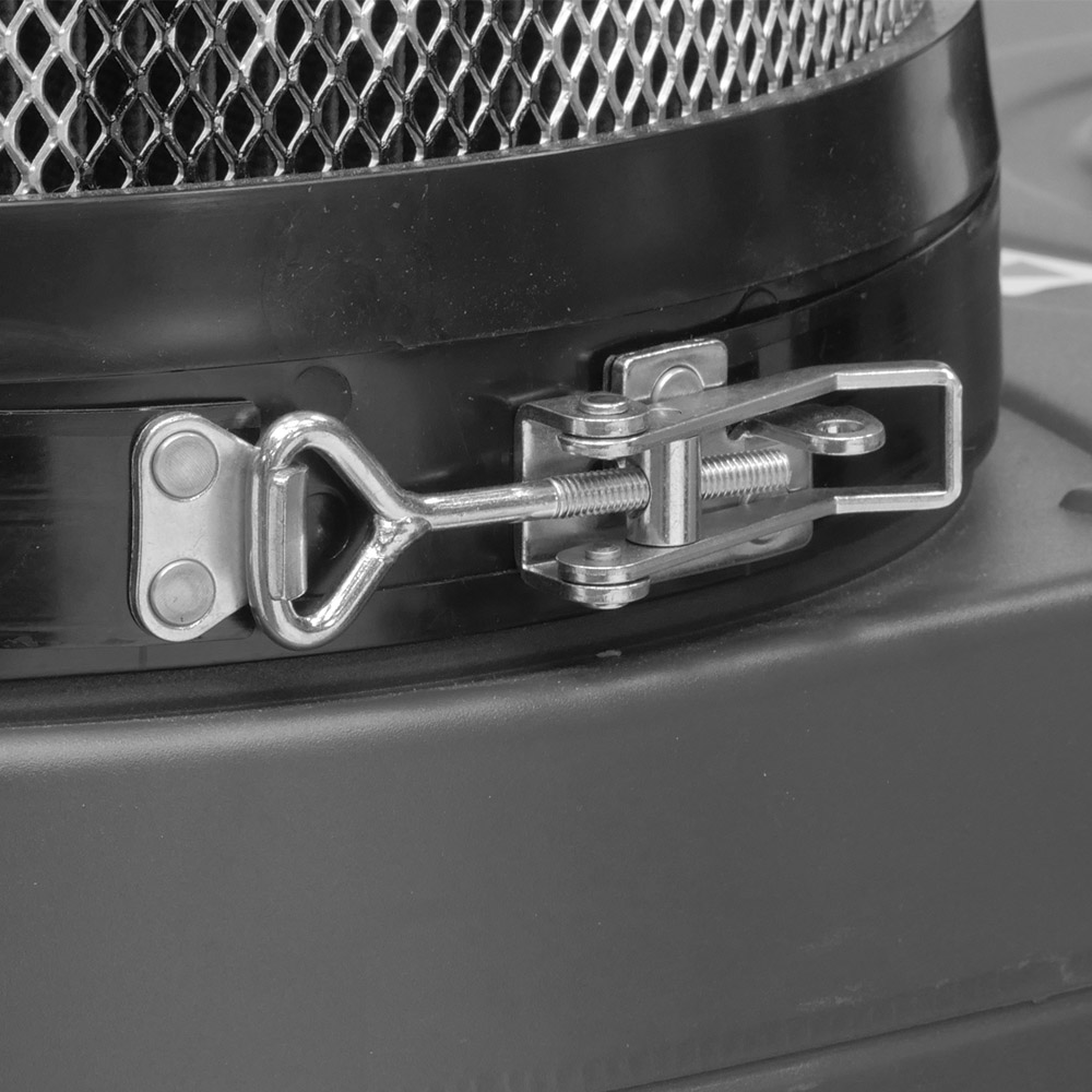 Keine umständlichen Stahlbandverschlüsse zur Befestigung des Abfalleimers: Die BFlux Absauganlage verfügt über Snap-Band für schnelle Befestigung des Abfallsacks. Stabile Konstruktion und geräuscharmer Lauf im Vergleich zu ähnlichen Anlagen. Die Anlage verfügt über einen 100mm Stutzen, der sich durchs Drehen des Anlagekörpers nach unten oder nach oben richten lässt. Somit kann der Absaugschlauch Abfallzuführung von unten oder von oben haben.