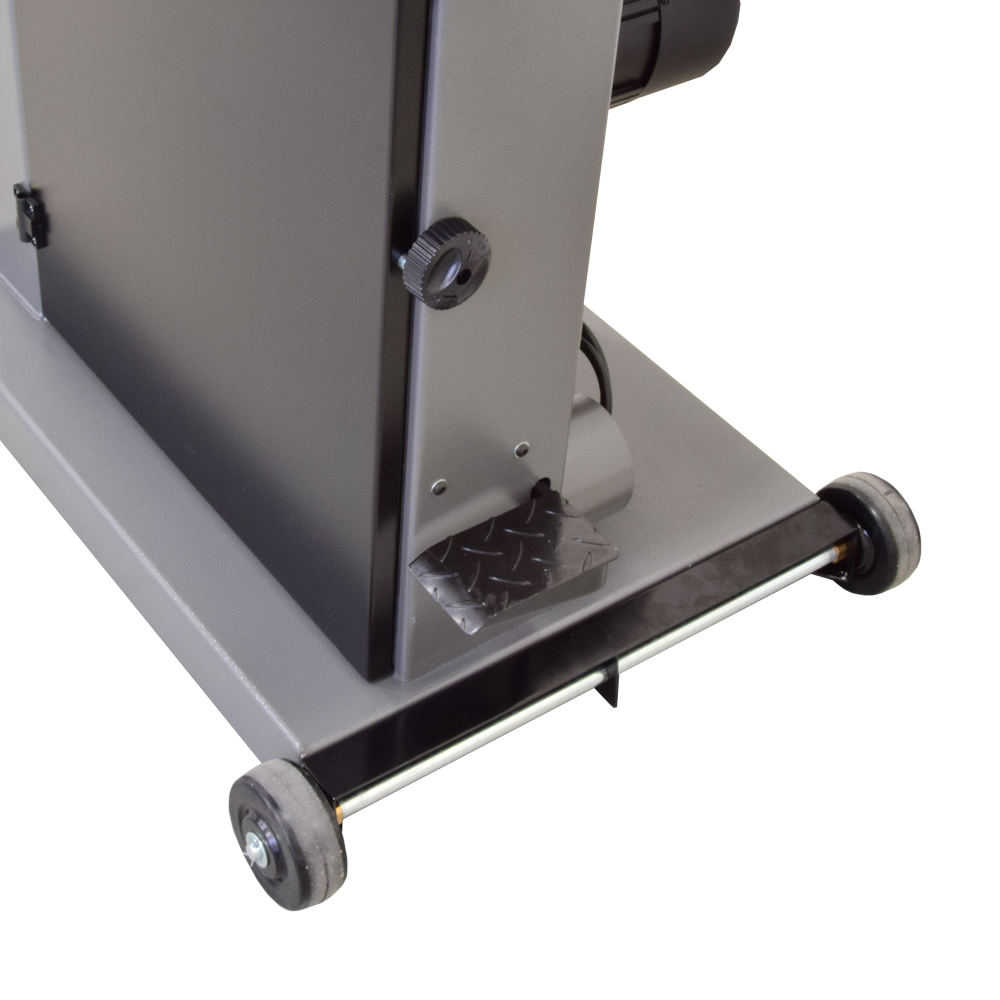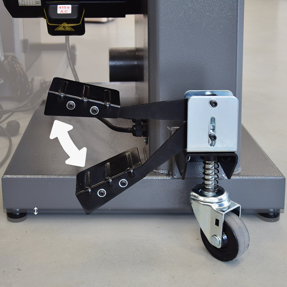 Praktisches Mobilset für IGM LAGUNA 18BX Bandsäge. Einfache Verschiebung durch Ihre Werkstatt mit zwei Stationär- und einem Drehrad. Anheben der Bandsägebasis mit Betätigung des Fußpedals.