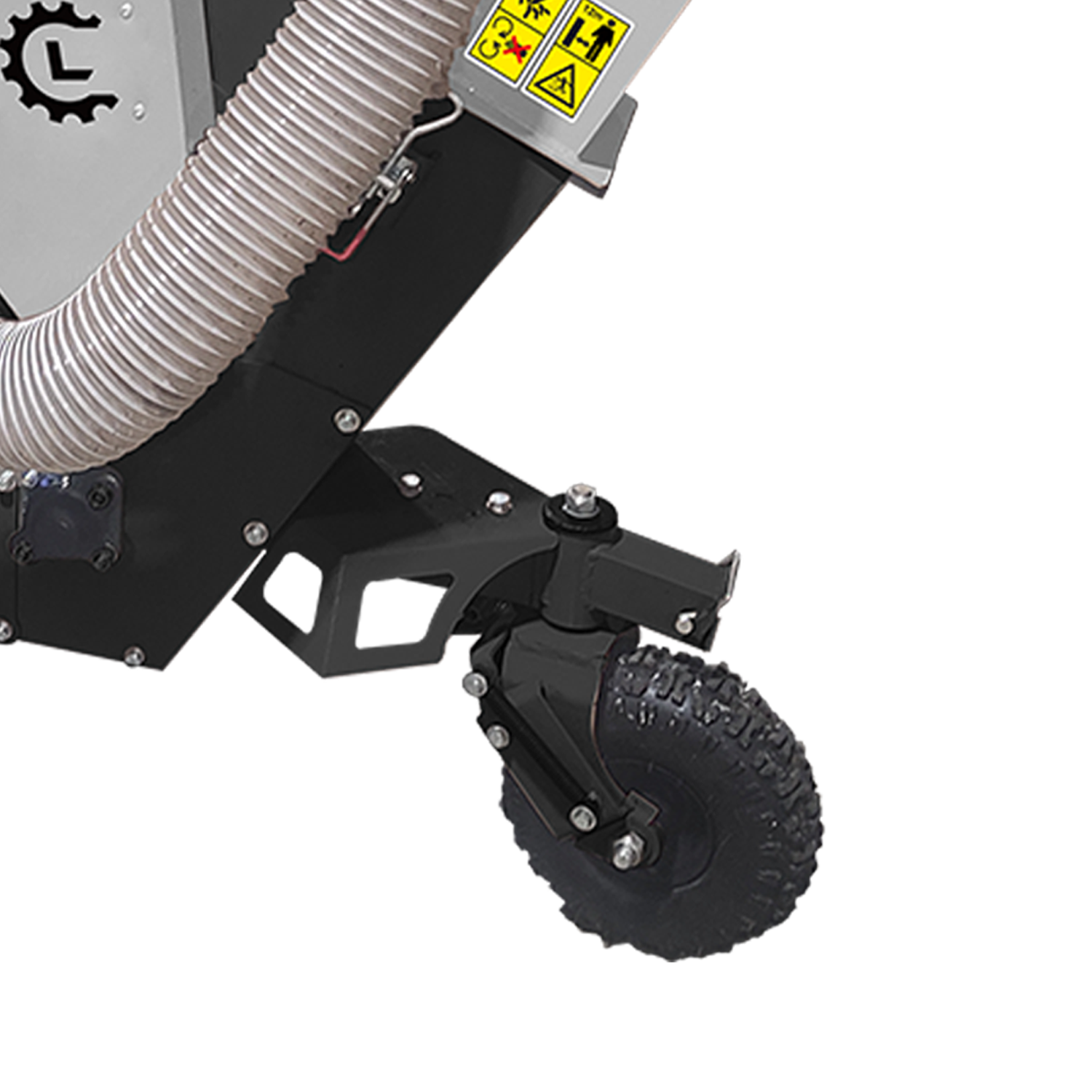 • Das integrierte Fahrwerk mit Stollen-Luftbereifung sowie abnehmbarer Deichsel sorgt für schnelles und einfaches Umsetzen, auch in unwegsamem Gelände.