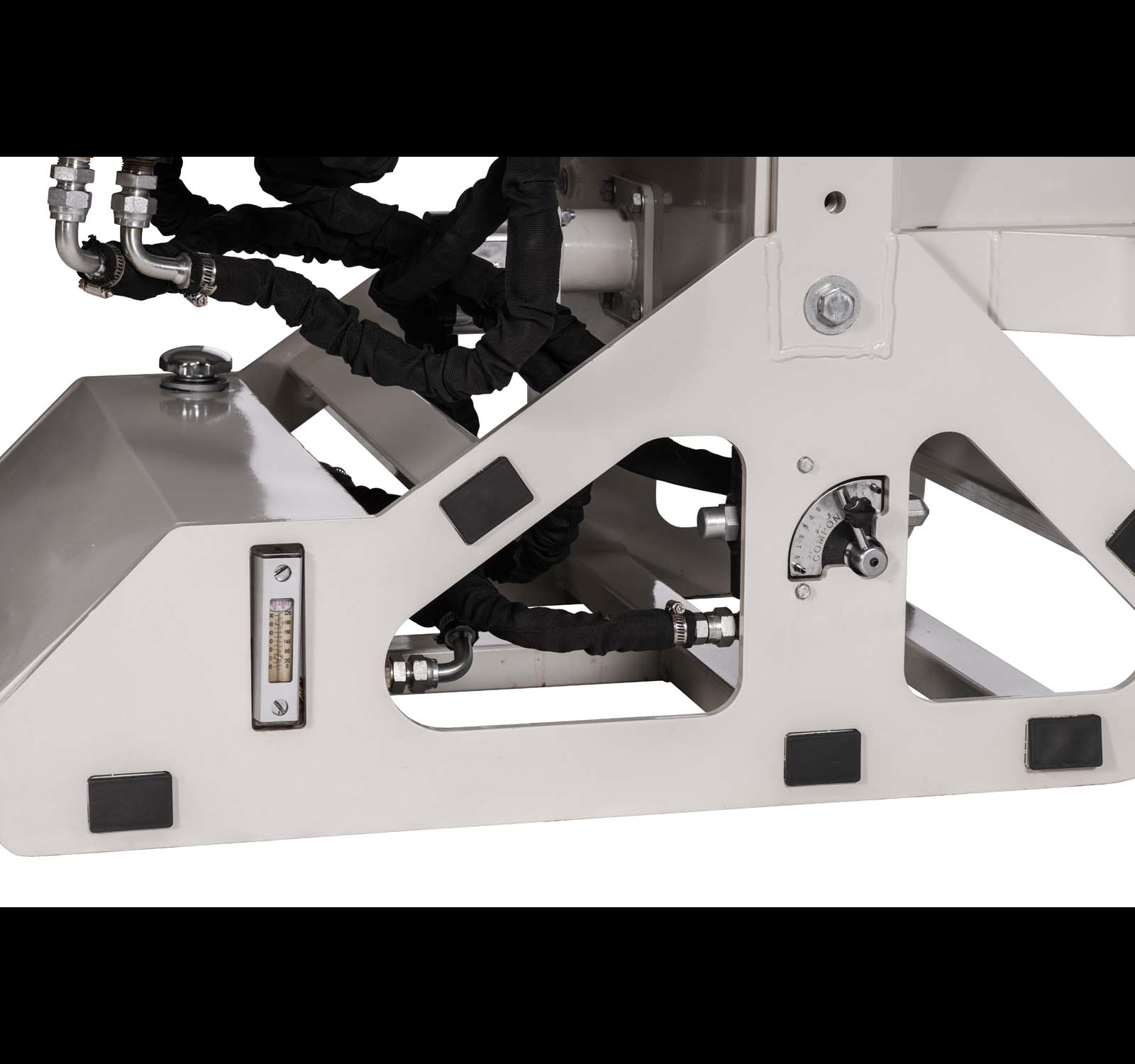 • Der Hydrauliköltank mit einer Kapazität von 26,5 Litern und Temperaturanzeige wurde platzsparend unter dem Gerät platziert.