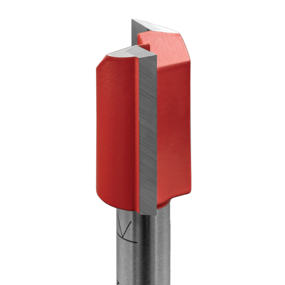 Eine tiefrote PTFE-Teflon-Beschichtung auf der Oberfläche des Fräsers schützt das Werkzeug vor Korrosion, verringert die Reibung und erhöht die Widerstandsfähigkeit gegen Späne, Leim und Harz. Dank der Beschichtung bleibt der Fräser sauber und bewahrt seine Schneide länger als herkömmliche Fräser.