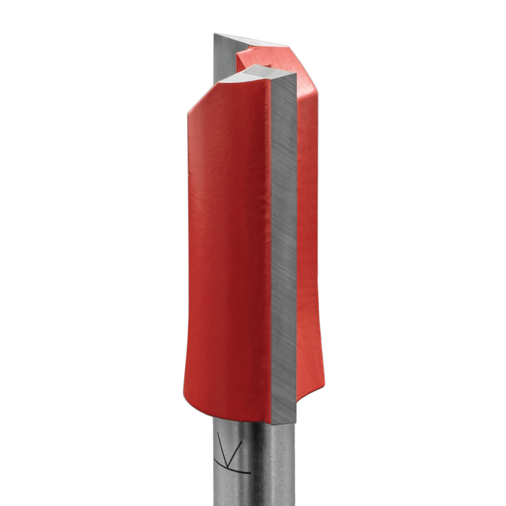 Eine tiefrote PTFE-Teflon-Beschichtung auf der Oberfläche des Fräsers schützt das Werkzeug vor Korrosion, verringert die Reibung und erhöht die Widerstandsfähigkeit gegen Späne, Leim und Harz. Dank der Beschichtung bleibt der Fräser sauber und bewahrt seine Schneide länger als herkömmliche Fräser.