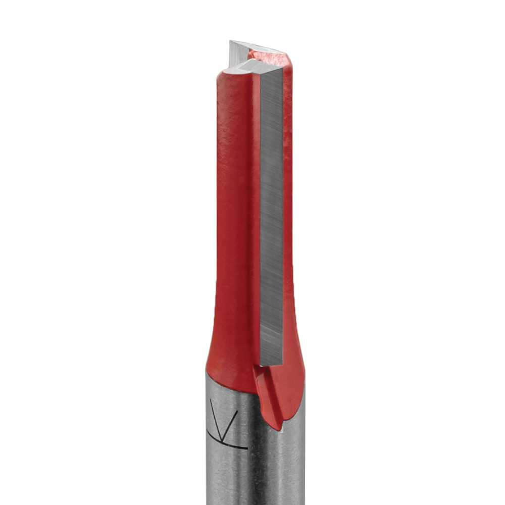 Eine tiefrote PTFE-Teflon-Beschichtung auf der Oberfläche des Fräsers schützt das Werkzeug vor Korrosion, verringert die Reibung und erhöht die Widerstandsfähigkeit gegen Späne, Leim und Harz. Dank der Beschichtung bleibt der Fräser sauber und bewahrt seine Schneide länger als herkömmliche Fräser.