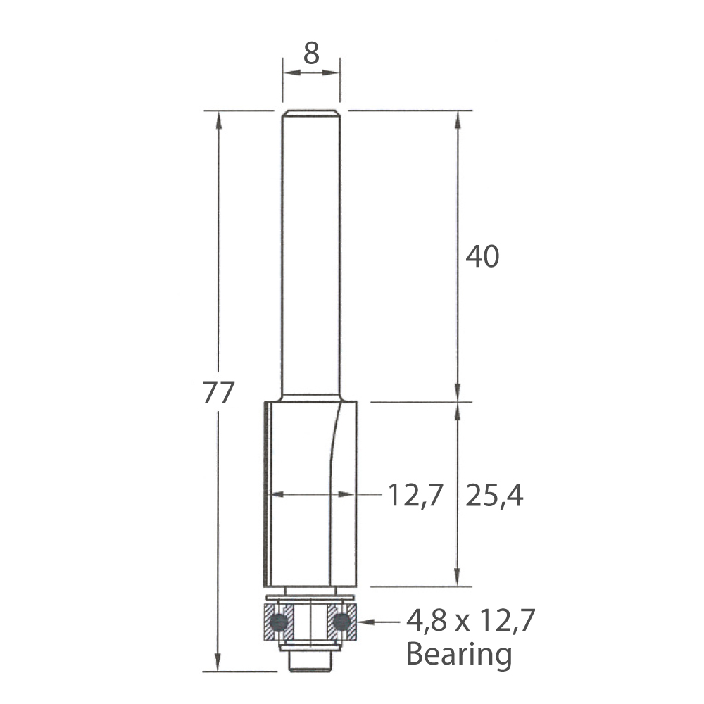 M106 Bündigfräser – D12,7×25,4 L77 S=8 HW