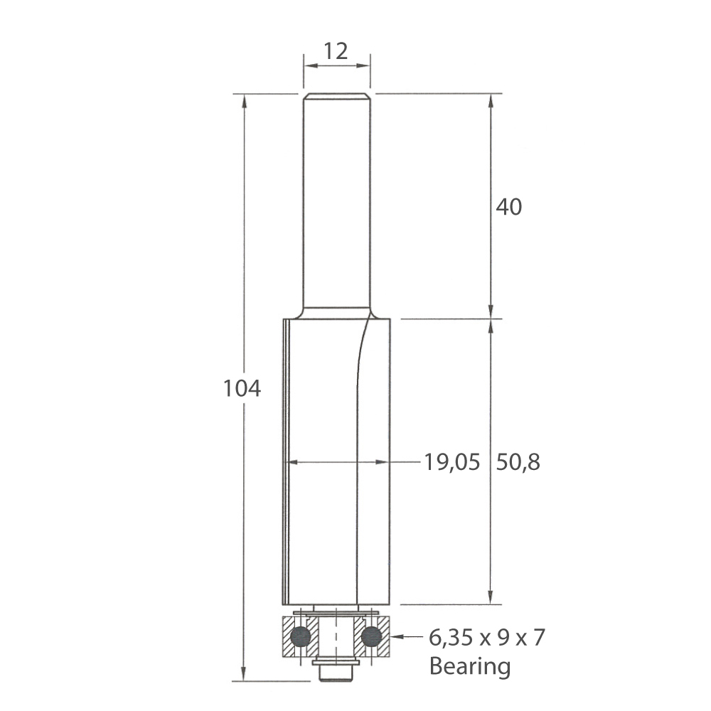 M106 Bündigfräser – D19,05×50,8 L104 S=12 HW