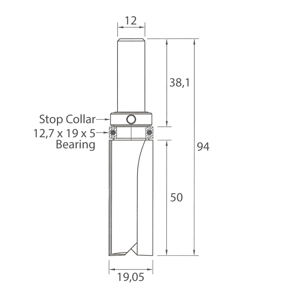 M112 Nutfräser mit Kugellager – D19,05×50 L94 S=12 HW