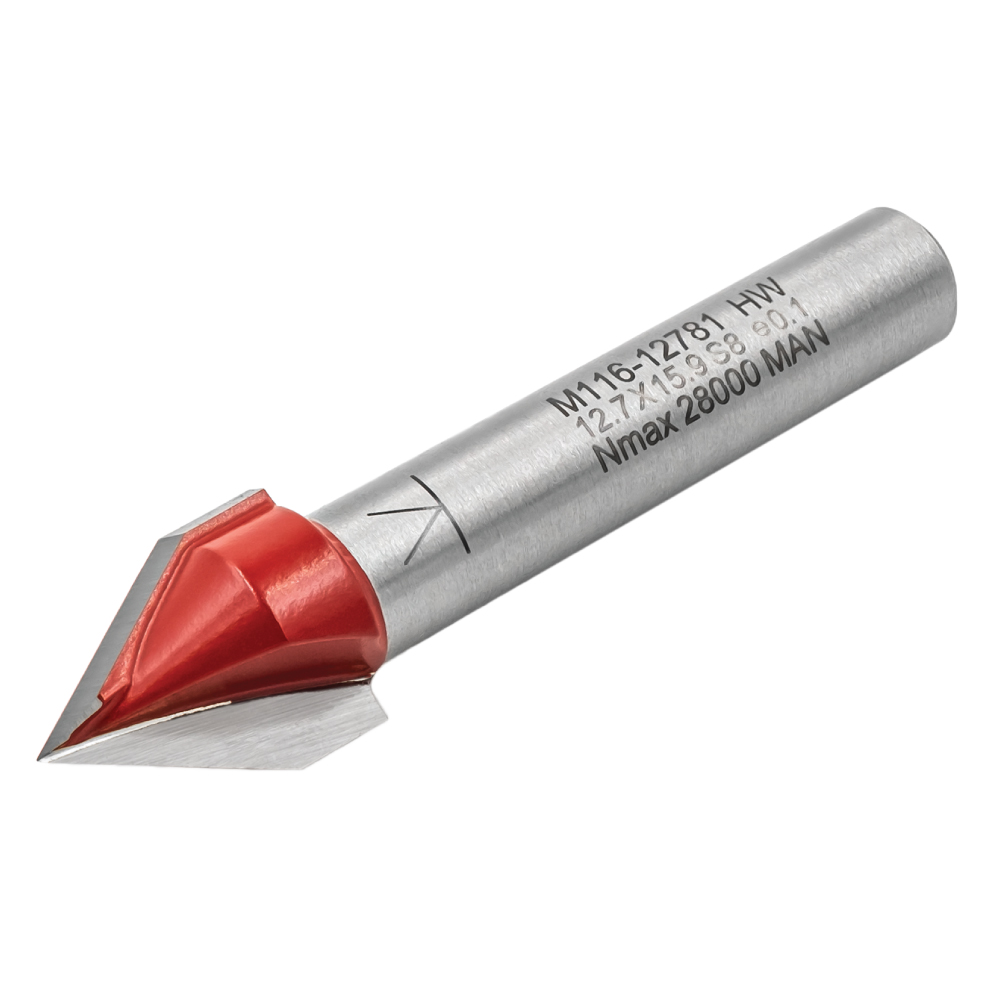 Der Schriftfräser 60° M116 mit zwei Hartmetall-Schneiden ist für das Fräsen von feinen Nuten und Schnitten mit Laserpräzision bestimmt, zur Erstellung von Aufschriften und Beschriftungen mit unterschiedlichen Schnitttiefen auf Holz oder Holzmaterialien. Kann in manuellen und CNC-Fräsen verwendet werden.