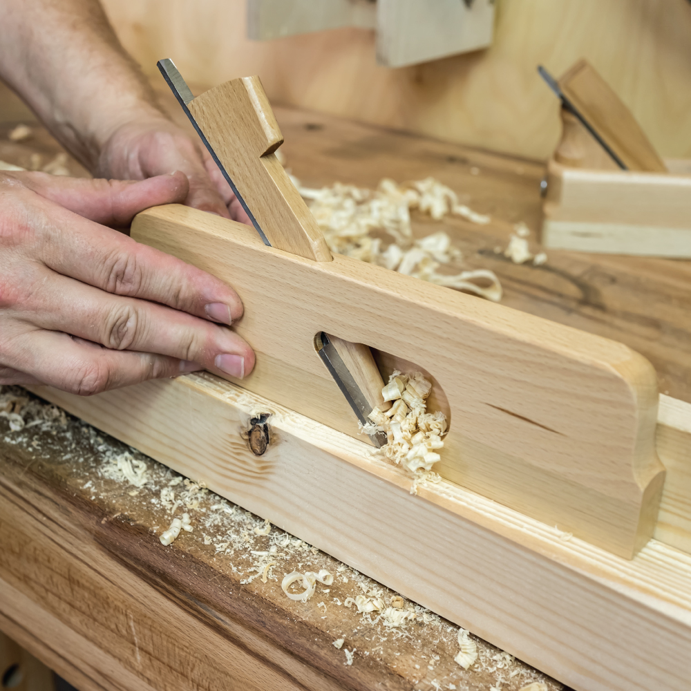 Hobeleisenbreite 18, 27 oder 30 mm. Der Hobelkörper ist aus Weißbuche gefertigt. Zum Hobeln von Nuten oder Halbnuten, zum Abrunden von Gesimsen, Tür- und Fensterrahmen, Profilecken und Kanten.