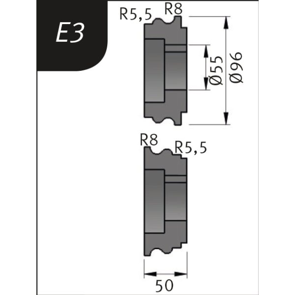 Metallkraft Biegerollensatz Typ E3, Ø 96 x 55 x 50 mm, R 5,5+8 / 8+5,5 mm