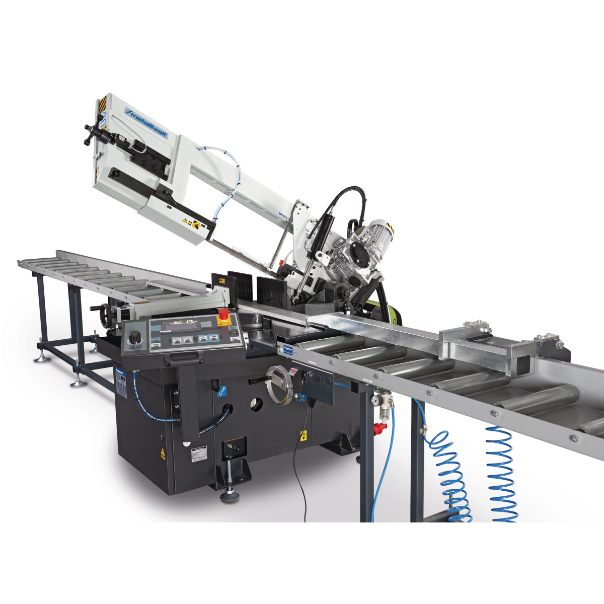 - Messanschlag durch Handrad vom Arbeitsplatz aus verstellbar, mit pneumatischer Bremse zur Maßfixierung